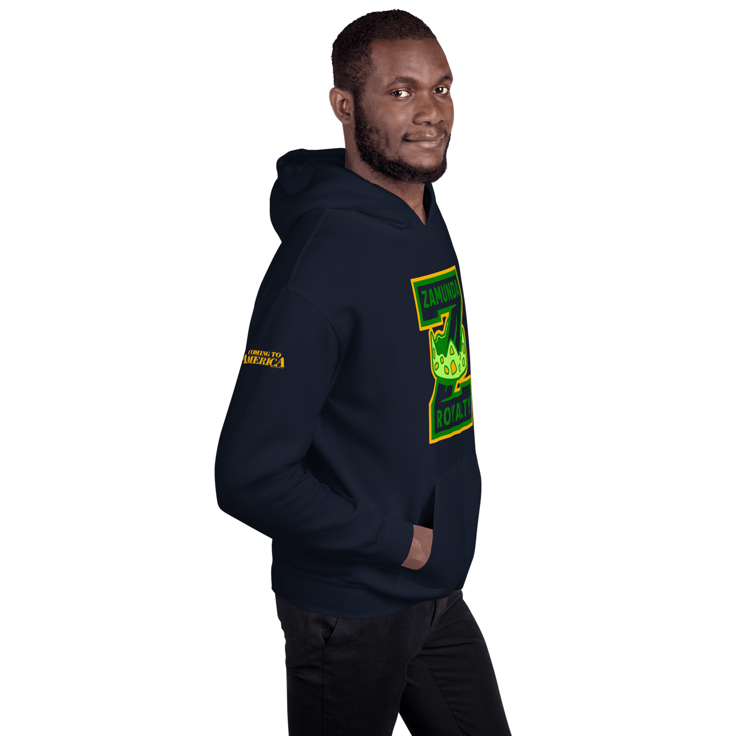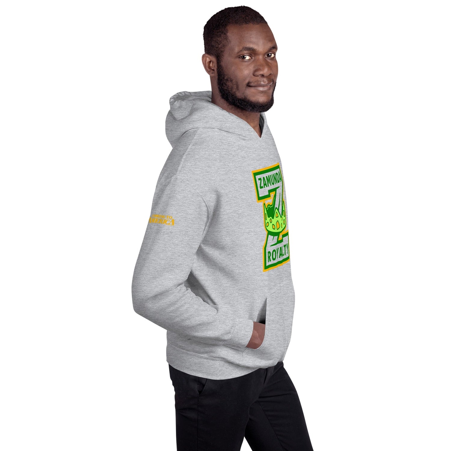 Our Coming To America Zamunda Royalty Adult Hooded Sweatshirt is the perfect companion to this classic film. Made with a comfortable fit and feel, you can wear it for movie marathons or everyday errands. It's comfort fit for royalty.