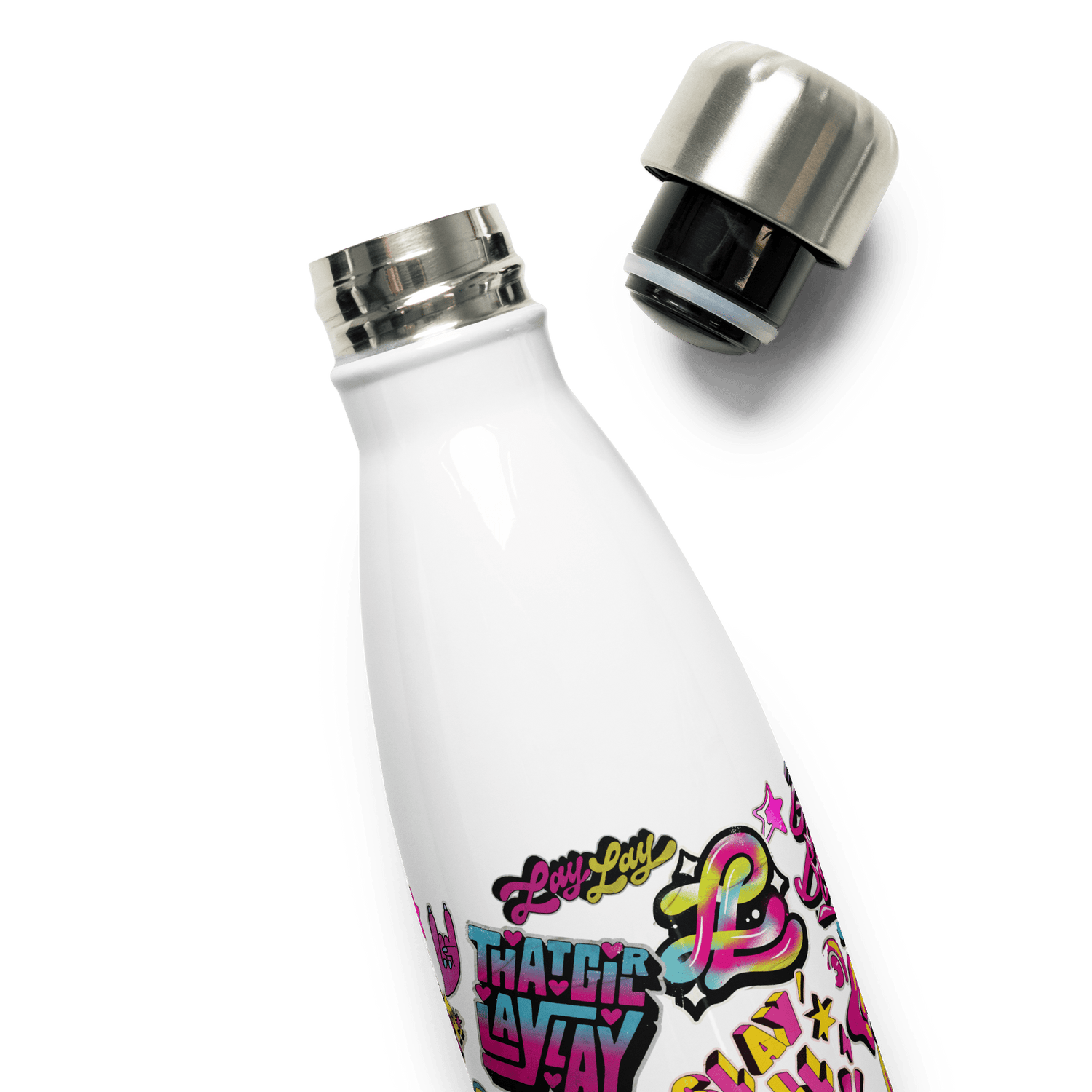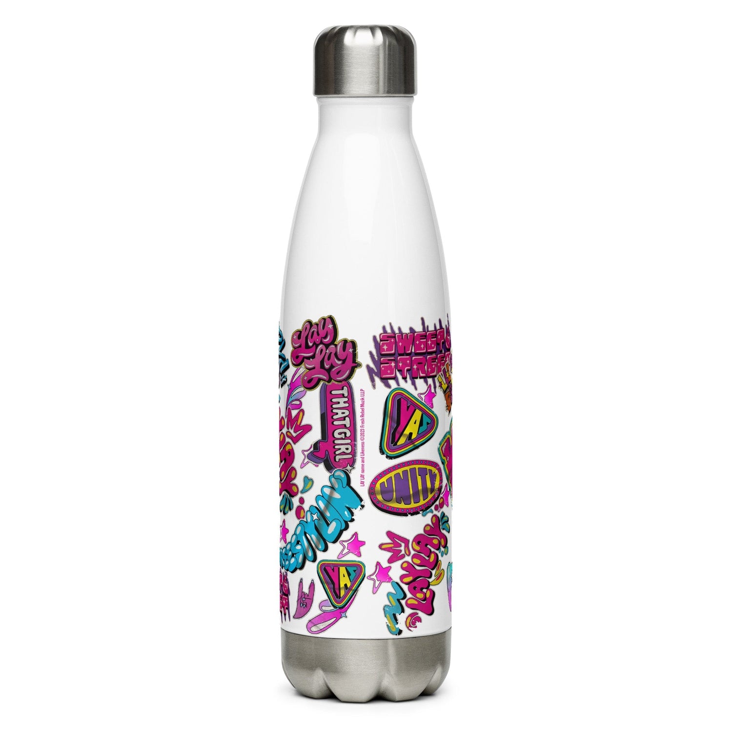 The That Girl Lay Lay Collage 17 oz. Stainless Steel Water Bottle will keep Lay Lay fans hydrated all day at school or on the go!